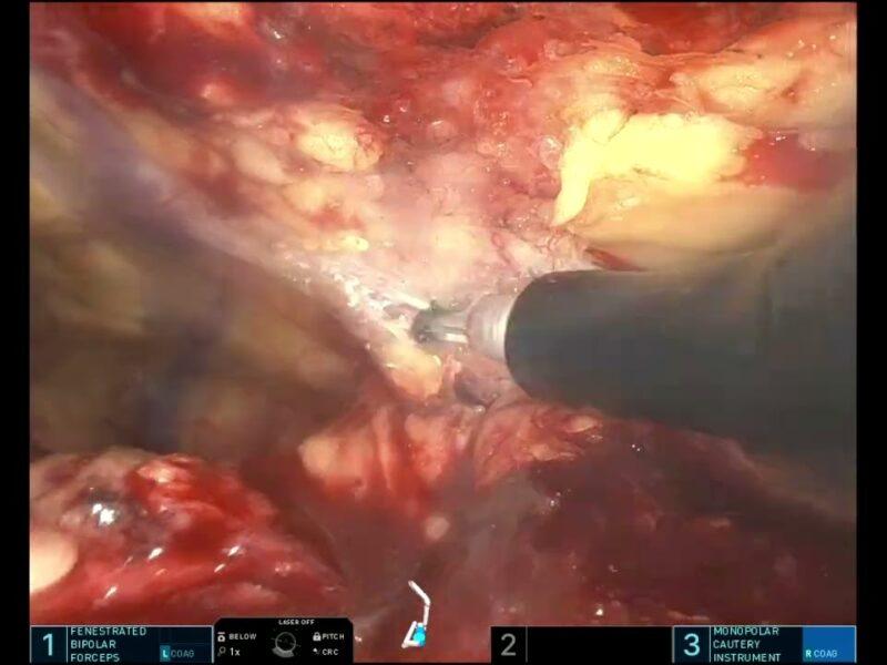 Patient and method: A 53 yr old woman with hypertension, diabetes and chronic kidneys disease was incidentally detected to have a 3.5cm mass in the interpolar region of the left kidney. The lesion arose from the posterior lip of renal cortex, abutting the hilum and invading renal sinus fat. The RENAL nephrometry score was 9p. Her blood pressure was controlled on 5 drugs, diabetes required 46 units of insulin and creatinine was 4.1mg%. Her weight was 100kg and BMI was 40.